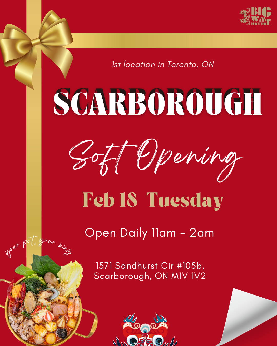 We’re thrilled to announce that Big Way Hot Pot is making its Toronto debut with our very first location in Scarborough!