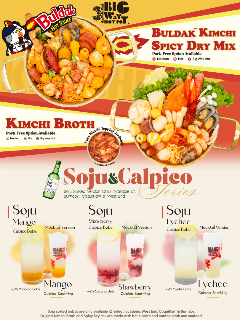 Big Way Hot Pot offers the ultimate self-serve hot pot experience that includes over 100 fresh and premium ingredients, as well as over 18 special broths and dry mixes to choose from, allowing you to create your hot pot in your own way!